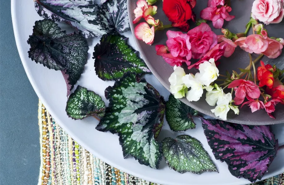 Das Begonien-Sortiment ist sehr umfangreich. Die am häufigsten vorkommende Pflanzengruppe ist die Begonia Elatior Gruppe. Sie enthält einfache, halbgefüllte und gefüllt blühende Sorten. Neu ist die Bodinia-Serie mit besonders stark gefüllten Blüten und gewellten Blättern. Ein Sortimentsklassiker zu Weihnachten ist die Begonia Lorraine Gruppe, mit kleineren Blüten und hängendem Wuchs. Bei den Blattbegonien finden wir bei der Begonia Rex Gruppe schöne Blattfarben und -formen und auch die Begonia Boweri Gruppe ist ein Klassiker im Blattbegonien-Sortiment.